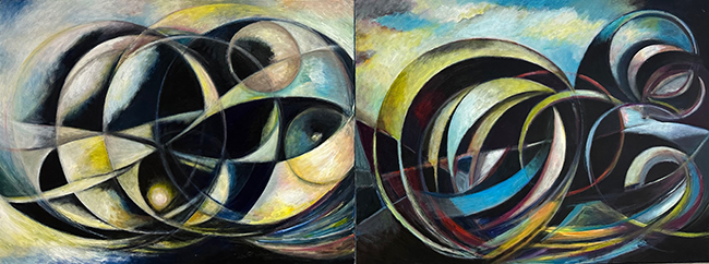 In Blue Loops, Gittelsohn crafts a sense of fluid motion with swirling ribbons of blue. The composition is alive with energy, capturing the essence of natural forces like wind and water. The loops seem suspended mid-air, their varying shades—from pale and translucent to deep and vibrant—evoking an ever-changing landscape.