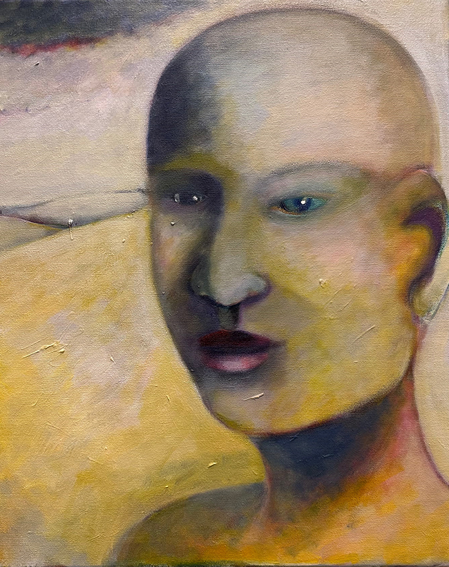 Drawing inspiration from a self-portrait by Rembrandt, Light Yellow Head is a contemplative piece that delves into the complexity of human emotion. The figure’s gaze is steady and direct, yet softened by an underlying vulnerability. The boundaries between the figure and the background are blurred, creating an almost ethereal quality that merges subject and setting.