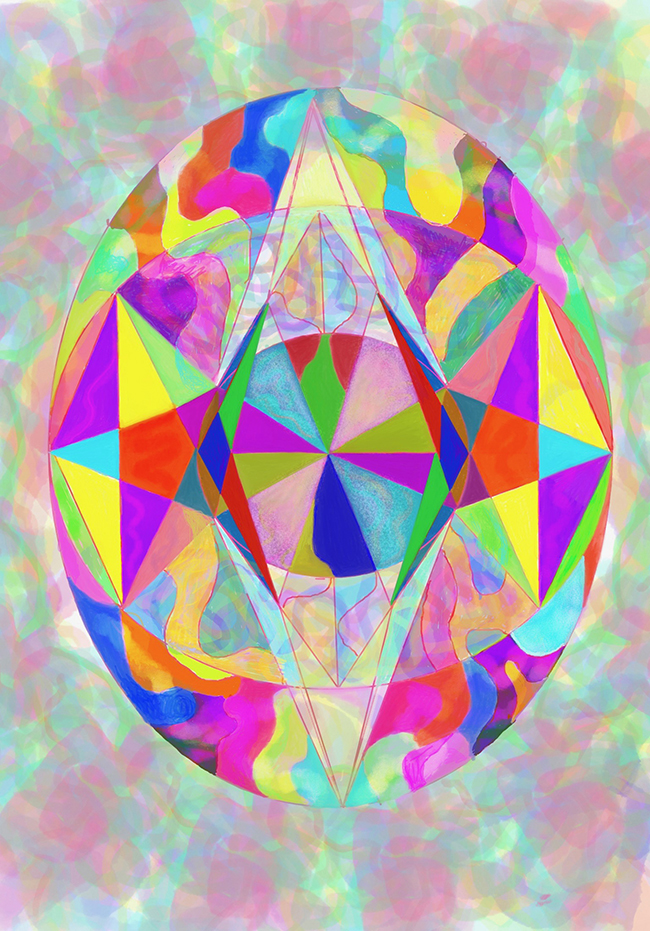 With Origen, Nicholas invites us to ponder the very beginnings of consciousness. The piece is an abstract, almost fluid depiction of what might be the genesis of thought itself. Organic shapes swirl and pulse with vibrant colors—gold, blue, and red—that seem to radiate life. Through layers of texture and light, the artwork captures the chaotic yet harmonious energy of a mind in formation.