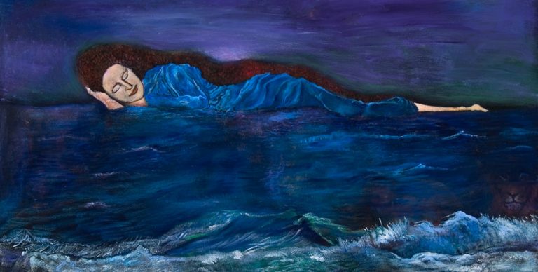Across all three works, Poniarski uses imagery not to explain but to suggest. Her style isn’t about clean interpretation. It’s layered. She weaves in visual riddles. A tree may also be a womb. A wave might be memory. A shell, a threshold. She leans on myths because they hold up under scrutiny and still leave room to dream. They let her speak to big themes—change, love, isolation, rebirth—without locking them down.