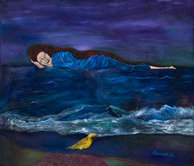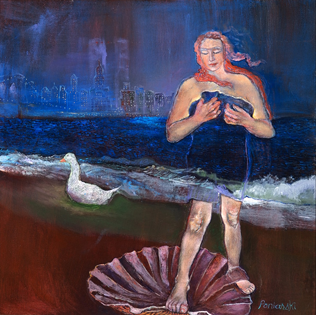 Her paintings don’t demand an answer. Instead, they offer a space to pause. To reflect. To look again. Ruth Poniarski’s shift from architecture to painting wasn’t just about changing materials—it was about loosening the grip of design to let intuition in. Her work holds that tension between form and feeling, between what we know and what we sense. And it’s in that space—in the second wave, in the quiet before Venus steps forward, in the moonlit bath—that her art speaks most clearly.