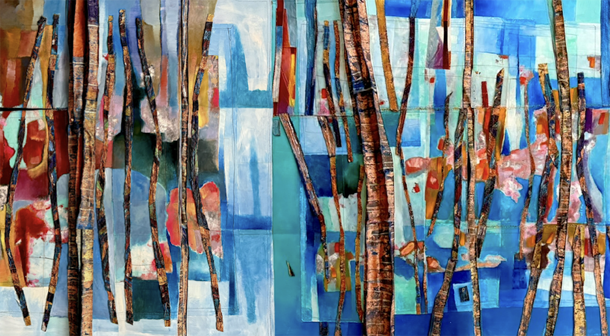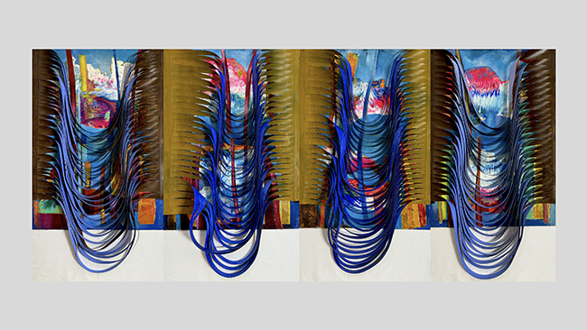 Barros’s latest project, “Gardens of My Life,” will open in September 2025 at MAC Movimento Arte Contemporânea, his gallery in Lisbon. The exhibition pulls together three large-scale works, all made with oil and mixed media on upcycled materials. Together, they read like chapters from a quiet, personal story. Each piece is less about showcasing nature as we know it and more about remembering how it feels to be inside it—fully, emotionally, without distraction.