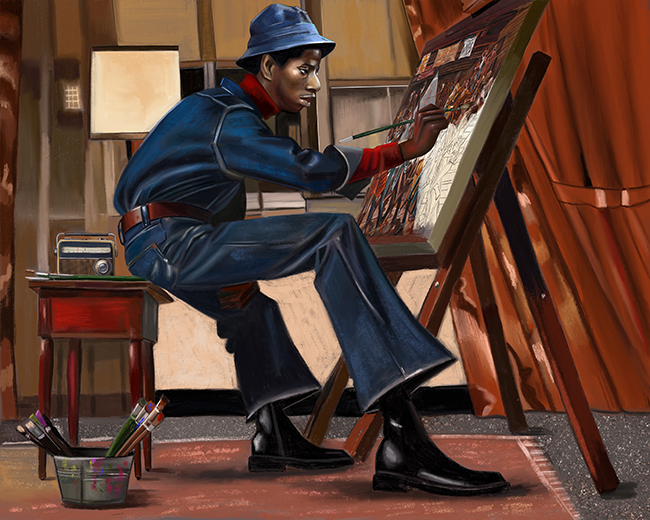 This painting flips the script. Kairi presents JJ not as a sidekick, but as a creative force. He uses this image to nod to Black artists past and present, and to spotlight the often-overlooked labor of making art. It’s a cultural homage that doesn’t just celebrate—it reclaims.
