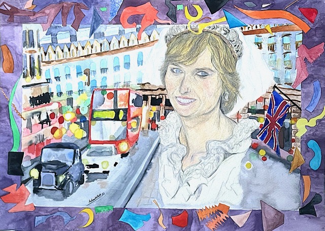 At first glance, you might think of Lady Diana—Princess of Wales—whose life and death still haunt the cultural imagination. Kotnik doesn’t declare that reference outright, but she lets it hover in the air. The suggestion of Lady Di isn’t literal. It’s psychological. It’s about how we create idealized images of women, how those images can trap and define, but also how they can carry dreams, longings, and the need to be seen.