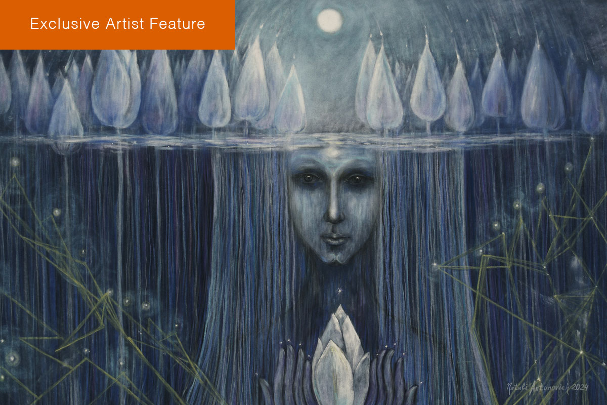 There’s a dreamlike stillness in Natali Antonovich’s art—an awareness that seems to hover between waking and sleep. Her paintings open quiet spaces where thought and feeling merge, where the visible world fades and something deeper takes form. She paints not to describe, but to listen—to herself, to silence, to the delicate pulse beneath experience. For Antonovich, creating is not a display but a kind of meditation, a conversation with the unseen. Each work emerges slowly, guided by reflection and patience rather than urgency.