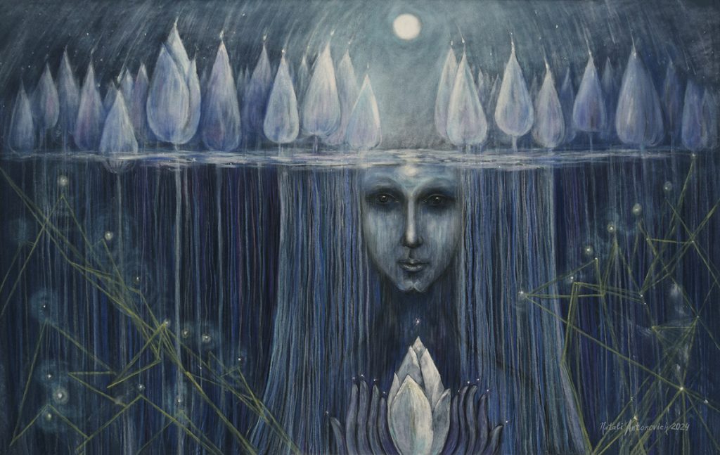 Antonovich’s paintings speak in the language of calm, where understanding arises not from explanation but from recognition. They linger after the gaze moves on, like echoes from a dream remembered at dawn. Through her work, she reminds us that gentleness can hold great power, and that reflection—when allowed its full depth—can lead us closer to truth.
