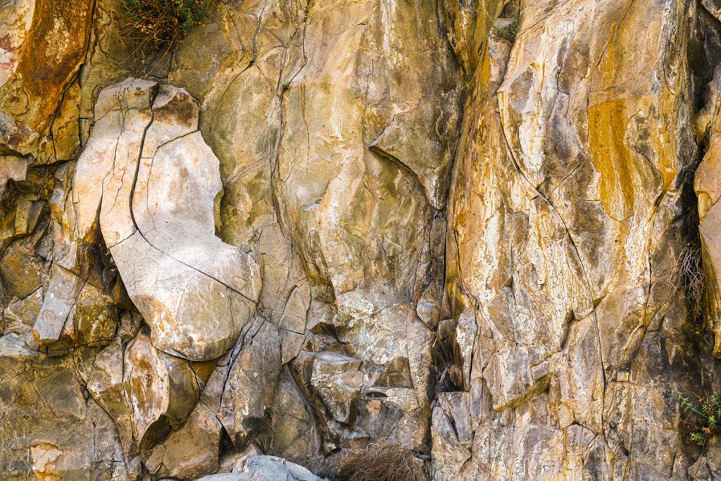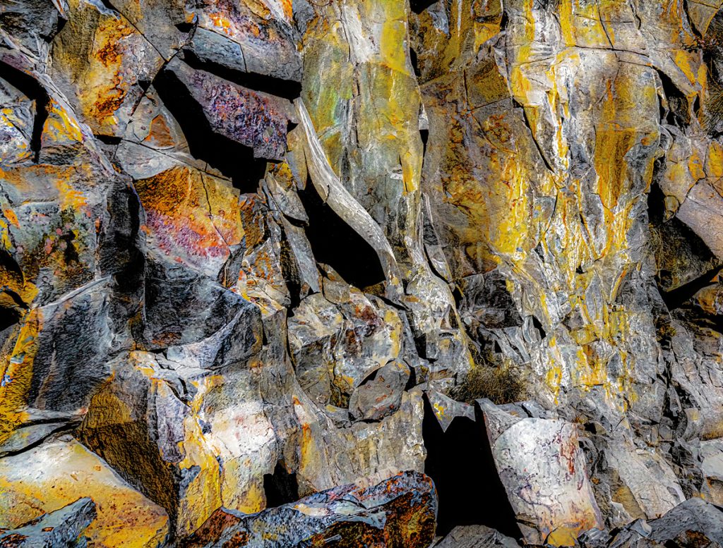 Hands on warm cliff, she hears them—low language of quartz and vein,