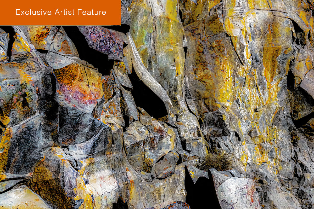 Celestial Stone Gallery stands among Jollon’s most contemplative works. The image reveals a landscape both earthly and ethereal—stones washed in hues that shimmer between dream and twilight. It could be mistaken for a photograph at first glance, yet the longer one looks, the more it transforms into something fluid—a hybrid of painting, vision, and prayer. Jollon describes it as “a gallery where stone meets the stars,” a place where earth and sky merge in color and memory.