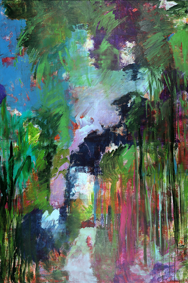At first glance, Nature Pure I–III reads fast: saturated color, layered marks, a surface alive with motion. But the trilogy isn’t meant to be consumed in passing. It asks for a slower pace—one where the first impression is only the threshold. Stay with these works and they begin to function less like pictures and more like locations. Openings appear where you didn’t notice them before. Edges stop feeling fixed. Suggestions of presence arrive—then retreat—like something half-seen at the edge of a path.