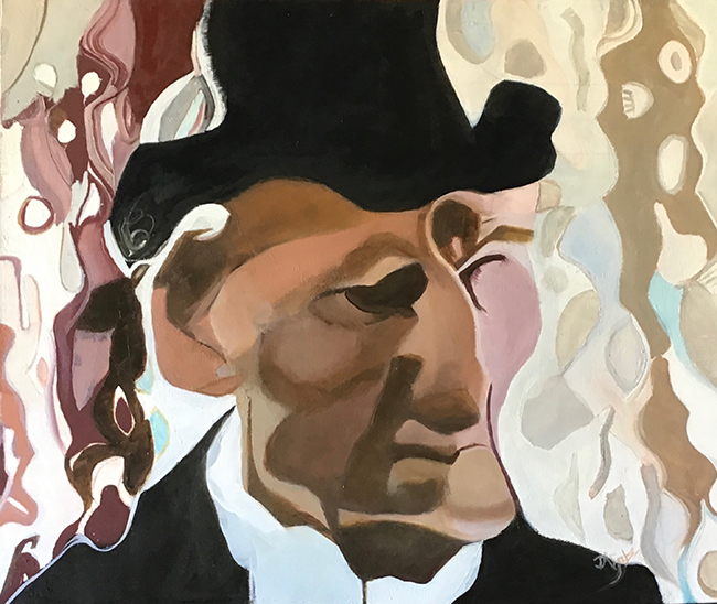 In The Voyeur, Gabe shifts focus inward. The figure appears in profile, yet the features resist clear definition. Edges soften and tones blend, making the face difficult to fully resolve. The subject remains partially obscured, placing the viewer in a position of looking without complete understanding.