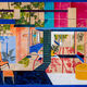 Guy Yanai’s collages are colorful and rich in texture, bringing everyday objects and spaces to life. Yanai uses basic geometric shapes in flat compositions and stripes down to minimal detail to create simple yet striking representations of contemporary leisure and domestic life. Yanai’s everyday subjects include striped sailboats, potted plants and interior decorations, creating a calm atmosphere similar to that of Hockney’s work.